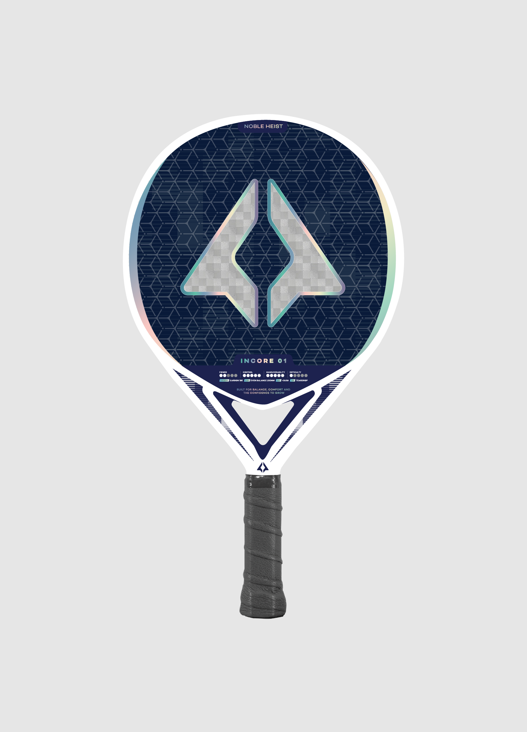Control in Cheat Mode. This round racket defines strategic equilibrium for the intermediate level. Experience accuracy with a maximum sweet spot, backed by a responsive EVA 17 Black core and premium 18K Carbon. The high balance delivers a powerful, solid feel. This is a definitive hitting experience, engineered to transform a control player into a true game strategist.